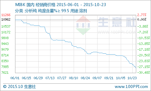 產(chǎn)品:本周國(guó)內(nèi)MIBK市場(chǎng)低位運(yùn)行,原料丙酮陰跌,加之進(jìn)口貨源沖擊,場(chǎng)內(nèi)氣氛沉重,持貨商報(bào)盤隨行就市,成交氣氛欠佳。目前華東市場(chǎng)散水參考價(jià)在7500-7700之間,華南參考商談在8000元/噸。