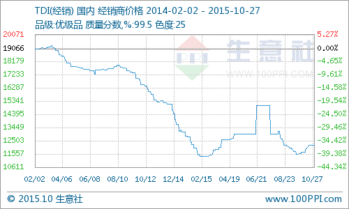 中國醫(yī)藥化工網(wǎng)10月28日訊 今日,國內TDI市場觀望為主,國產(chǎn)廠家近日召開行業(yè)會議,供方挺市意向明顯,然下游買盤不振,業(yè)者多觀望供方報價,短線市場小幅上行可能性大。