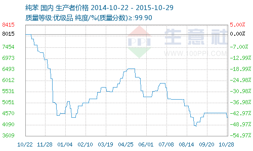 由于美國原油庫存增幅略低于預(yù)期,原油價格強(qiáng)勁反彈,截至周三(10月28日),美國WTI原油12月期貨周三(10月28日)收漲2.74美元,報45.94美元/桶。原油大幅反彈,可支撐部分業(yè)內(nèi)人士的心態(tài),加之美國外盤收盤上漲,亞洲-美國套利窗口開啟,有利于提振市場信心。但目前貿(mào)易商走貨不暢,下游用戶大都低價采購,成交緩慢。純苯下游苯乙烯市場震蕩整理,短期內(nèi)難有大幅漲跌,大趨勢看空。預(yù)計短期純苯市場或維持整理為主,需繼續(xù)關(guān)注原油和外盤動態(tài)