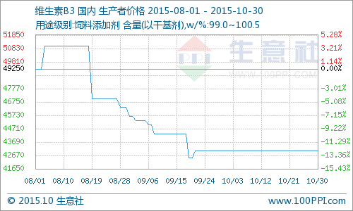 據(jù)生意社價(jià)格監(jiān)測:維生素B3(99%煙酰胺)本月月初報(bào)價(jià)43元/千克,月末報(bào)價(jià)43元/千克,持穩(wěn)運(yùn)行。