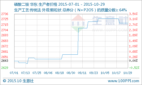 10月29日磷酸二銨市場盤整運(yùn)行。今日,磷酸二銨參考價(jià)為2718.75元/噸,與月初(2727.50)相比,下降了0.32%。目前國內(nèi)主流64%磷酸二銨出廠2700元/頓左右,57%二銨目前價(jià)格暫穩(wěn),出廠報(bào)價(jià)多在2400元/噸左右。湖北工廠64%二銨華北地區(qū)到站2850元/噸,云南大型工廠64%二銨華北地區(qū)到站價(jià)2900元/噸,華北、華東64%磷酸二銨主流批發(fā)價(jià)2900~2950元。目前部分廠家開始預(yù)收冬儲(chǔ)訂單,但由于下游市場接受程度較低,國際市場疲軟以及糧價(jià)走低等因素影響,市場需求還未打開,預(yù)計(jì)后期冬儲(chǔ)不會(huì)太理想,價(jià)格有可能下滑。
