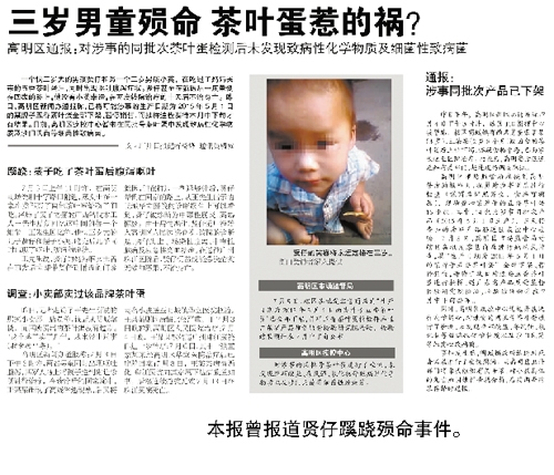 佛山市高明區(qū)明城鎮(zhèn)一名三歲男童食用五香茶葉蛋后出現(xiàn)嘔吐、腹瀉等癥狀,送醫(yī)后不治身亡。是茶葉蛋有毒,還是另有隱情?