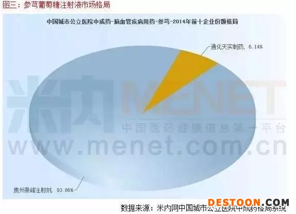 參芎葡萄糖注射液有兩個景峰醫(yī)藥、通化天實制藥兩個廠家,據(jù)米內(nèi)網(wǎng)數(shù)據(jù),景峰醫(yī)藥占有90%以上的市場。
