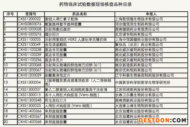 5月4日,國家食品藥品監(jiān)督管理總局食品藥品審核查驗中心官網(wǎng)發(fā)布藥物臨床試驗數(shù)據(jù)現(xiàn)場核查計劃公告(第2號)。公告稱,根據(jù)《國家食品藥品監(jiān)督管理總局藥物臨床試驗數(shù)據(jù)核查工作程序(暫行)》(食藥監(jiān)藥化管〔2016〕34號)要求,計劃對重組人凋亡素2配體等20個藥物臨床試驗數(shù)據(jù)自查核查品種(詳見附件)開展現(xiàn)場核查,現(xiàn)予公示。公示期為10個工作日,即2016年5月4日至2016年5月17日。
