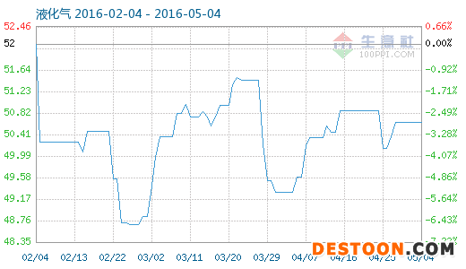 5月5日液化氣商品指數(shù)為50.64,與昨日持平,較周期內(nèi)最高點(diǎn)125.66點(diǎn)(2012-03-25)下降了59.70%,較2016年02月28日最低點(diǎn)48.70點(diǎn)上漲了3.98%。(注:周期指2011-09-01至今)