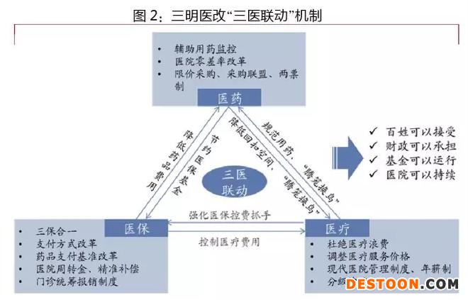 會(huì)議提出了探索“三險(xiǎn)合一”的管理模式、建立醫(yī)療機(jī)構(gòu)考核機(jī)制、建立基本醫(yī)療保險(xiǎn)周轉(zhuǎn)金制度、引入各級醫(yī)院間競爭機(jī)制、成立藥品集中采購監(jiān)管與使用工作領(lǐng)導(dǎo)小組、擴(kuò)大門診報(bào)銷范圍和比例、改革患者預(yù)繳金制度、積極推進(jìn)按單病種付費(fèi)與臨床路徑管理等十三項(xiàng)措施,明確了醫(yī)藥、醫(yī)保、醫(yī)療“三醫(yī)聯(lián)動(dòng)”綜合改革的路徑。