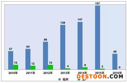 圖:2010年至2016年化學藥1.1類新藥申報現(xiàn)狀