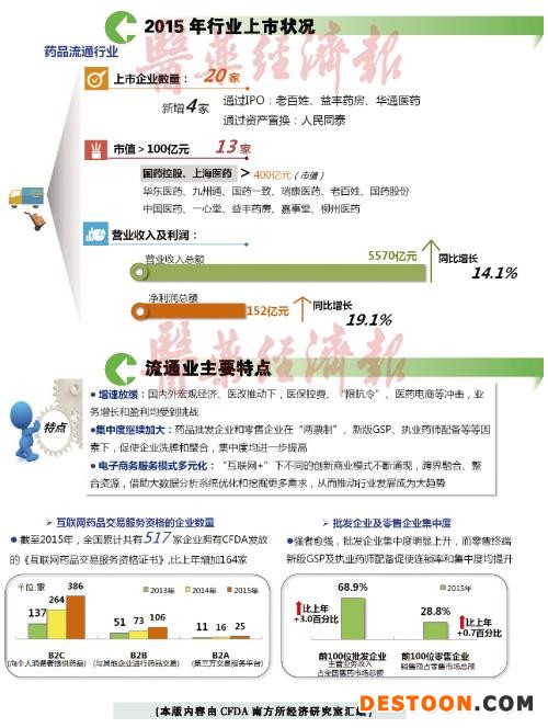 近期,商務(wù)部發(fā)布了2015年的藥品流通行業(yè)運(yùn)行統(tǒng)計(jì)分析報(bào)告,從報(bào)告可見(jiàn),2015年藥品流通在國(guó)內(nèi)外經(jīng)濟(jì)大環(huán)境下,在醫(yī)藥改革不斷縱深推進(jìn)中,”互聯(lián)網(wǎng)+”催生業(yè)態(tài)多元化、新模式、新技術(shù)的挑戰(zhàn),行業(yè)整體發(fā)展雖然進(jìn)入增速趨緩階段。互聯(lián)網(wǎng)下的跨界融合,也給醫(yī)藥流通行業(yè)向綜合服務(wù)提供商轉(zhuǎn)型升級(jí)帶來(lái)契機(jī)。