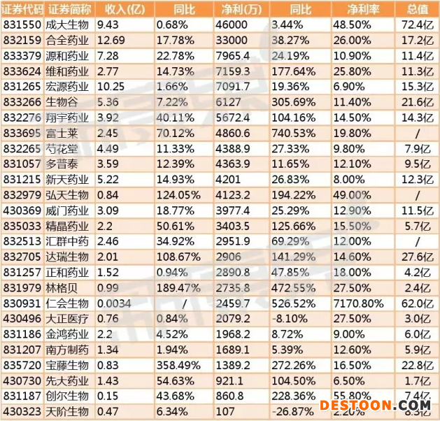 6月18日,新三板創(chuàng)新層名單公布,共有920家公司入圍創(chuàng)新層。據(jù)新康界統(tǒng)計(jì),其中醫(yī)藥制造與流通企業(yè)數(shù)量為26家,凈利潤過億元企業(yè)共2家,分別是成大生物及合全藥業(yè)。CRO企業(yè)合全藥業(yè),2015年實(shí)現(xiàn)營收12.69億元,同比增長18%;凈利潤3.3億元,同比增長38%,業(yè)績?cè)鲩L主要是由于醫(yī)藥研發(fā)外包服務(wù)市場持續(xù)發(fā)展。