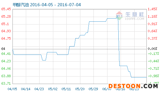 7月3日甲醇汽油商品指數(shù)為63.86,與昨日持平,創(chuàng)下周期內(nèi)的歷史新低,較2012年09月18日最高點(diǎn)111.01點(diǎn)下降了42.47%。(注:周期指2011-09-01至今)