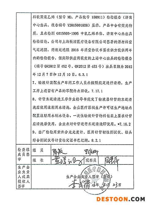 4、對(duì)洪湖泰寧醫(yī)療器械有限公司飛行檢查情況