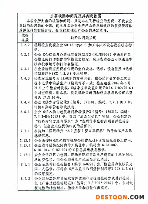 天新福(北京)醫(yī)療器械股份有限公司的以下行為(見(jiàn)下表)不符合醫(yī)療器械生產(chǎn)質(zhì)量管理規(guī)范相關(guān)要求,質(zhì)量管理體系存在缺陷。現(xiàn)由北京市食品藥品監(jiān)督管理局責(zé)成天新福(北京)醫(yī)療器械股份有限公司對(duì)上述缺陷限期整改。