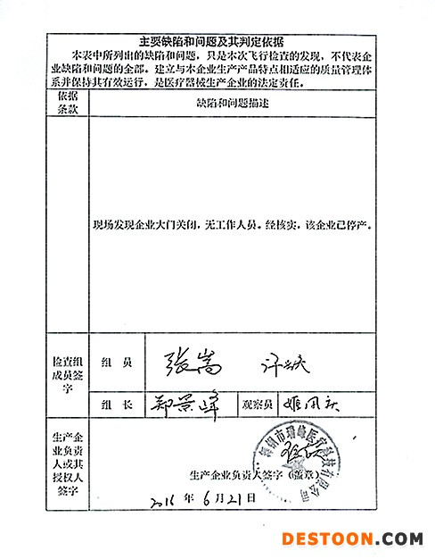 舞鋼市瑞峰醫(yī)療科技有限公司于2014年12月5日因各崗位人員流失嚴(yán)重、質(zhì)量管理人員和檢驗(yàn)人員的離崗等原因申報(bào)停產(chǎn)。經(jīng)檢查組現(xiàn)場(chǎng)核實(shí),該企業(yè)處停產(chǎn)狀態(tài)。該企業(yè)恢復(fù)生產(chǎn)前應(yīng)當(dāng)按照有關(guān)規(guī)定書面報(bào)告河南省食品藥品監(jiān)督管理局,經(jīng)河南省食品藥品監(jiān)督管理局核查符合要求后方可恢復(fù)生產(chǎn)。