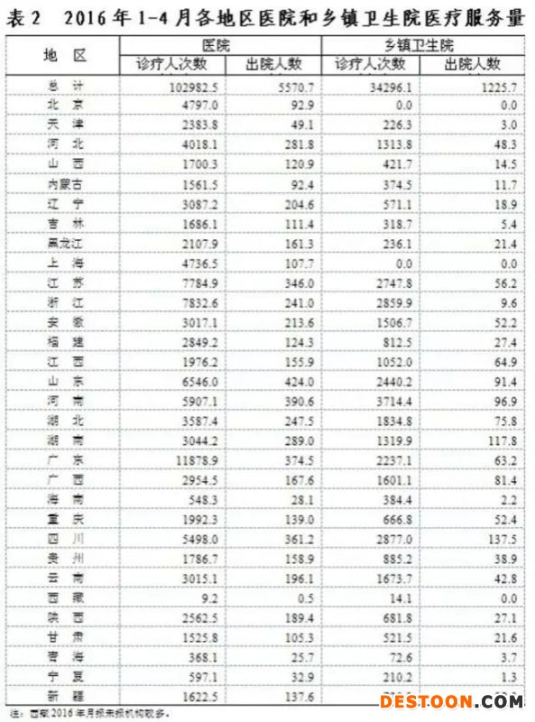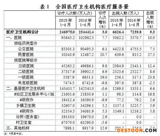 2016年1-4月全國(guó)醫(yī)療服務(wù)情況