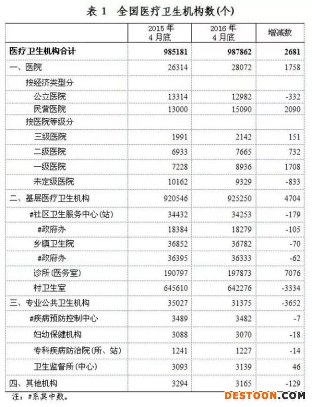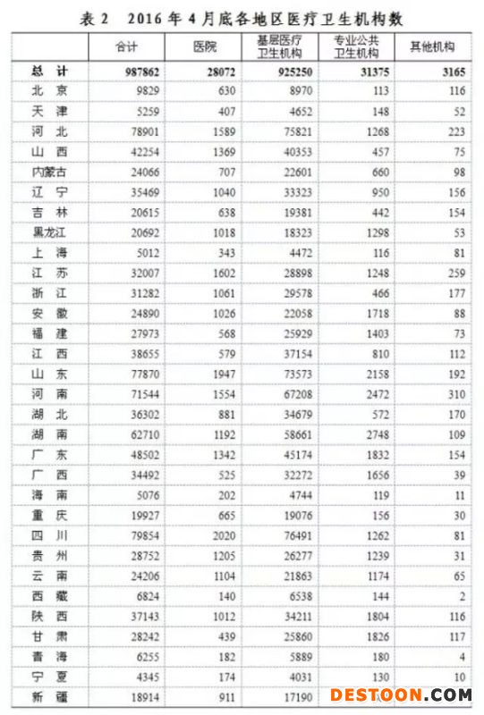 2016年4月底全國(guó)醫(yī)療衛(wèi)生機(jī)構(gòu)數(shù)