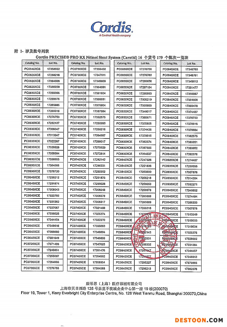 8、康蒂思(上海)醫(yī)療器械有限公司對鎳鈦支架系統(tǒng)主動召回