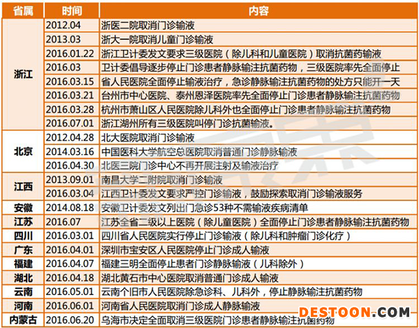 從2012年開始,各地就已經(jīng)陸續(xù)有叫停門診輸液的單個醫(yī)院,而到了今年則成為全國蔓延的大趨勢,這對于以輸液相關(guān)藥品為主營業(yè)務(wù)的企業(yè)無疑將產(chǎn)生巨大影響。