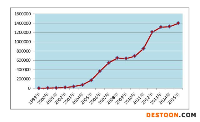 圖1 1999年-2015年全國(guó)藥品不良反應(yīng)/事件報(bào)告數(shù)量增長(zhǎng)趨勢(shì)