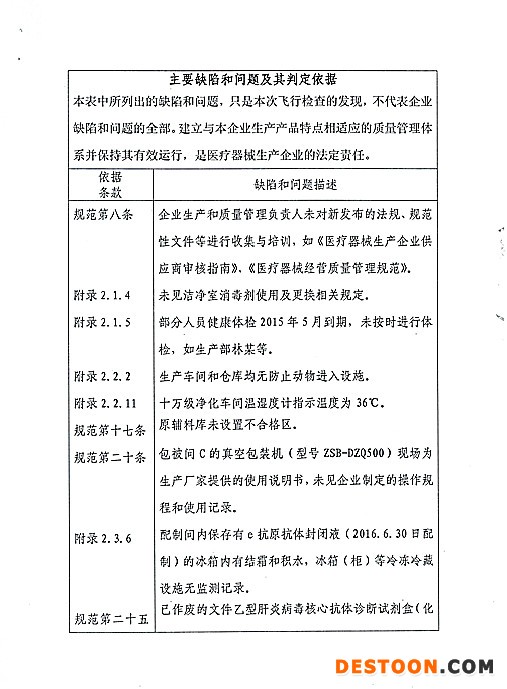艾博生物醫(yī)藥(杭州)有限公司的以下行為(見(jiàn)下表)不符合醫(yī)療器械生產(chǎn)質(zhì)量管理規(guī)范相關(guān)要求,質(zhì)量管理體系存在缺陷?,F(xiàn)由浙江省食品藥品監(jiān)督管理局責(zé)成艾博生物醫(yī)藥(杭州)有限公司對(duì)上述缺陷限期整改。