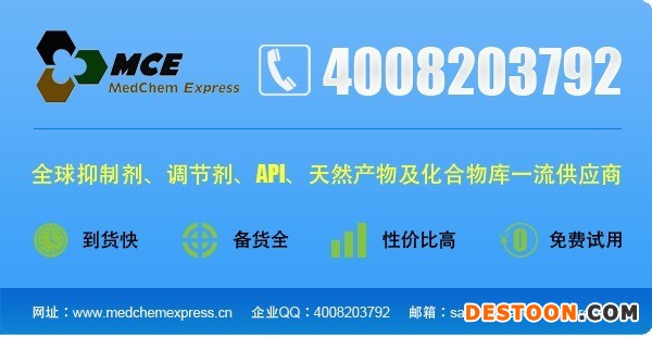 | NSC348884產(chǎn)品描述:NSC348884 is a nucleophosmin inhibitor disrupts oligomer formation and induces apoptosis, inhibits cell proliferation at an IC50 of 1.7-4.0 μM in distinct cancer cell lines.Target: nucleophosminin vitro: NSC348884 is a putative nucleophosmin small molecular inhibitor that disrupts a defined hydrophobic pocket required for oligomerization. NSC348884 disrupts nucleophosmin oligomer formation by native polyacrylamide gel electrophoresis assay. NSC348884 upregulates p53. NSC348884 induces apoptosis.[1] 公司介紹:MedChemExpress(MCE)專(zhuān)注于各種抑制劑、激動(dòng)劑、API及化合物庫(kù),總部位于美國(guó)新澤西,分別在瑞典和上海設(shè)有歐洲區(qū)子公司和亞洲區(qū)總代理,營(yíng)銷(xiāo)網(wǎng)點(diǎn)遍及全球20多個(gè)國(guó)家地區(qū)。MCE經(jīng)過(guò)多年努力已成為全球生物活性小分子領(lǐng)域的一流供應(yīng)商, 產(chǎn)品涵蓋癌癥、神經(jīng)科學(xué)、抗感染、表觀(guān)遺傳學(xué)等20個(gè)熱門(mén)研究領(lǐng)域,PI3K、MAPK等近千個(gè)細(xì)分靶點(diǎn),超過(guò)4000個(gè)活性小分子化合物現(xiàn)貨,以及GPCR、API、離子通道等超過(guò)20種不同類(lèi)型的化合物庫(kù),同時(shí)提供從毫克到千克的專(zhuān)業(yè)定制合成服務(wù)。 MCE 對(duì)每批產(chǎn)品都進(jìn)行嚴(yán)格的LCMS和NMR檢驗(yàn),其產(chǎn)品已被全球近萬(wàn)名客戶(hù)廣泛使用并發(fā)表大量文章、專(zhuān)利; MCE 定期增加各領(lǐng)域熱門(mén)抑制劑、激動(dòng)劑,不斷擴(kuò)增已有化合物庫(kù),以滿(mǎn)足最新的科研需求; 數(shù)千種產(chǎn)品在上海有充足備貨,24-48小時(shí)內(nèi)送達(dá)客戶(hù); 大量產(chǎn)品提供免費(fèi)試用裝;已為全球多個(gè)知名企業(yè)、院校構(gòu)建各種定制型化合物庫(kù)。 產(chǎn)品鏈接:www.medchemexpress.cn/nsc348884.html ![]() |