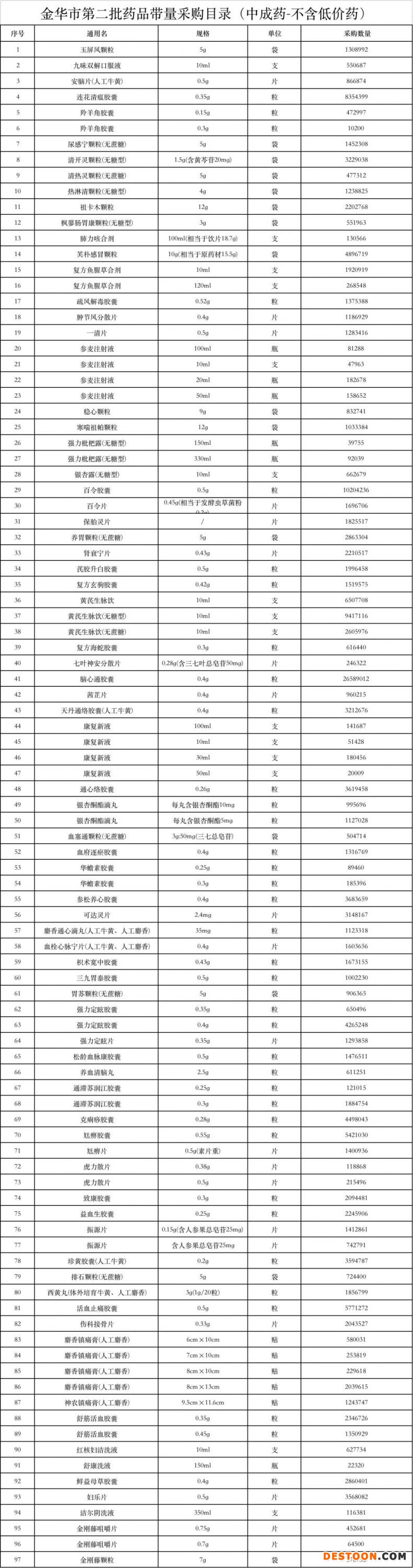 此外,需要注意的是,此次浙江金華市還將180個(gè)中成藥納入帶量采購,其中不乏清開靈顆粒、疏風(fēng)解毒膠囊、蒲地藍(lán)消炎口服液、復(fù)方丹參片、小兒柴桂退熱顆粒和連花清瘟膠囊等知名中藥大品種。