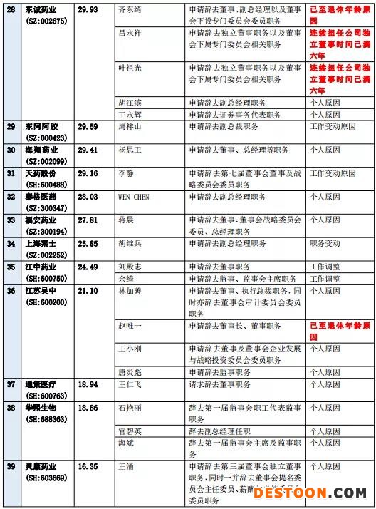 其中,復(fù)星醫(yī)藥、東北制藥、九芝堂、東誠藥業(yè)、江蘇吳中、力生制藥6家藥企高管離職人數(shù)在4人或4人以上。