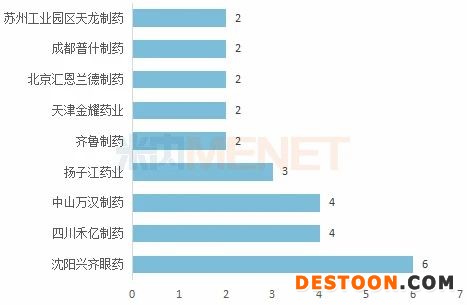 從企業(yè)過評(píng)情況看,6個(gè)滴眼液共涉及7家藥企,中山萬漢制藥、成都普什制藥各有2個(gè)滴眼液過評(píng),其余5家企業(yè)均有1個(gè)滴眼液過評(píng)。