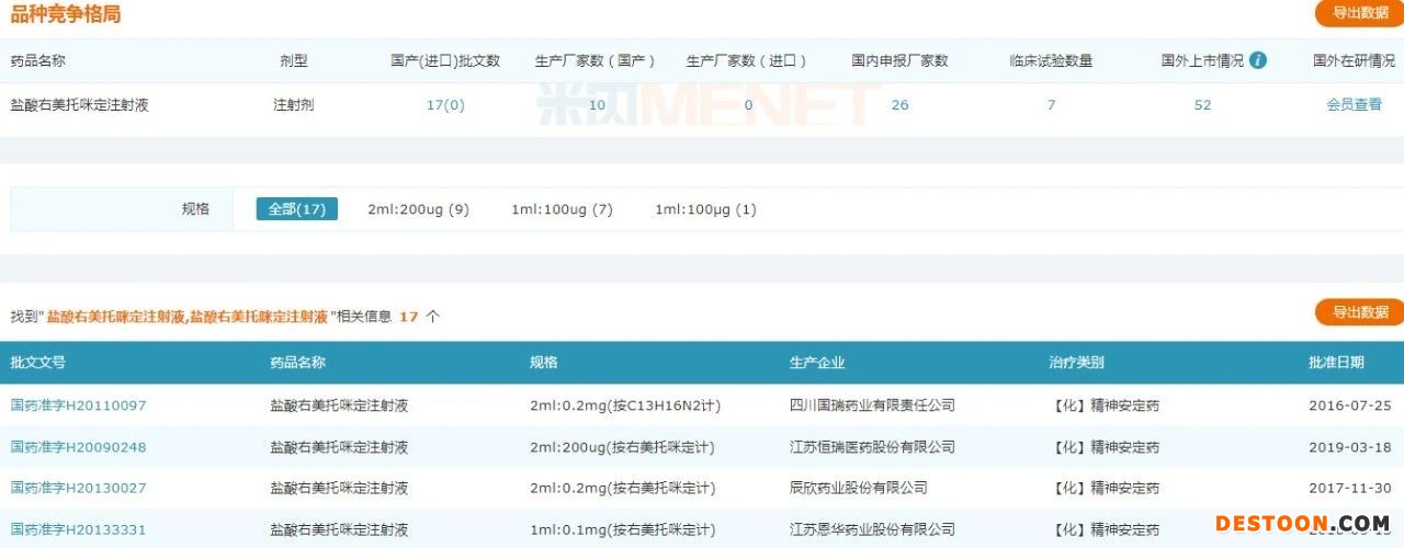 日前,CDE官網(wǎng)顯示,江蘇正大清江制藥的鹽酸右美托咪定注射液以仿制3類申報(bào)上市。米內(nèi)網(wǎng)數(shù)據(jù)顯示,2019年中國(guó)公立醫(yī)療機(jī)構(gòu)終端右美托咪定注射劑銷售額超過(guò)30億元。目前,國(guó)內(nèi)生產(chǎn)企業(yè)有恒瑞醫(yī)藥、揚(yáng)子江藥業(yè)、辰欣藥業(yè)、恩華藥業(yè)、湖南科倫制藥等10家。一致性評(píng)價(jià)方面,僅有揚(yáng)子江藥業(yè)一家過(guò)評(píng)。