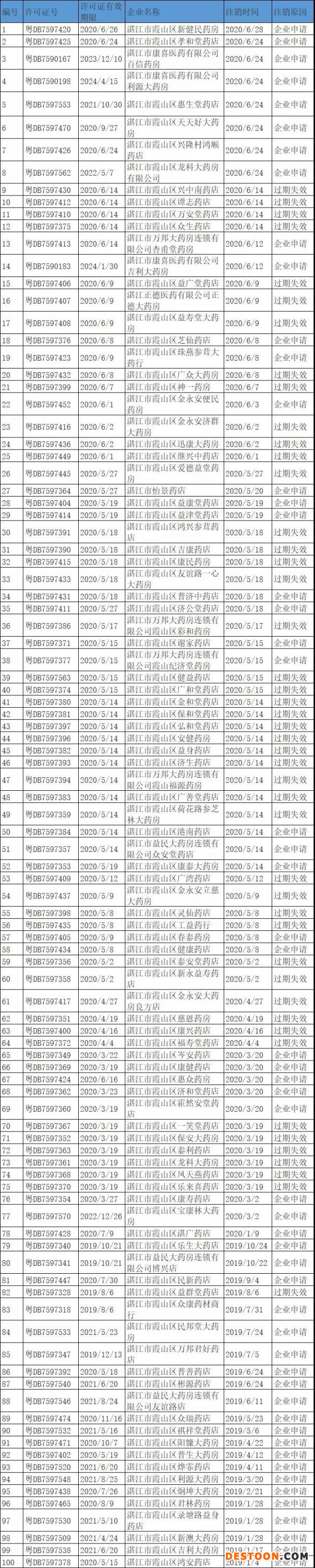 公告指出,根據(jù)《廣東省食品藥品監(jiān)督管理局關(guān)于<藥品經(jīng)營許可證>注銷的管理規(guī)定》(粵食藥監(jiān)法〔2013〕26號),2019年1月1日至2020年6月30日,我局已依法注銷湛江市霞山區(qū)新健民藥房等100家企業(yè)《藥品經(jīng)營許可證》。