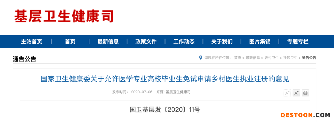 7月6日,國家衛(wèi)健委發(fā)布《國家衛(wèi)生健康委關于允許醫(yī)學專業(yè)高校畢業(yè)生免試申請鄉(xiāng)村醫(yī)生執(zhí)業(yè)注冊的意見》(以下簡稱《意見》)。