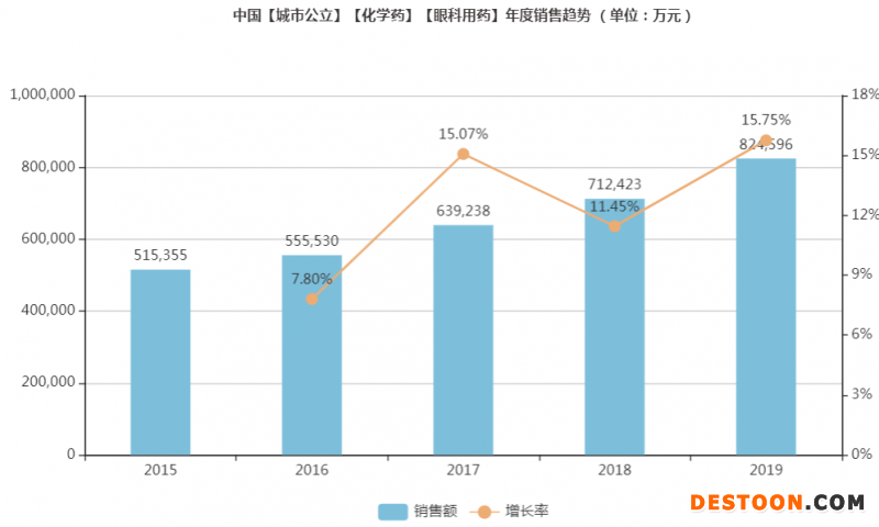 ▲中國城市公立醫(yī)院眼科用藥年度銷售趨勢(單位:萬元)