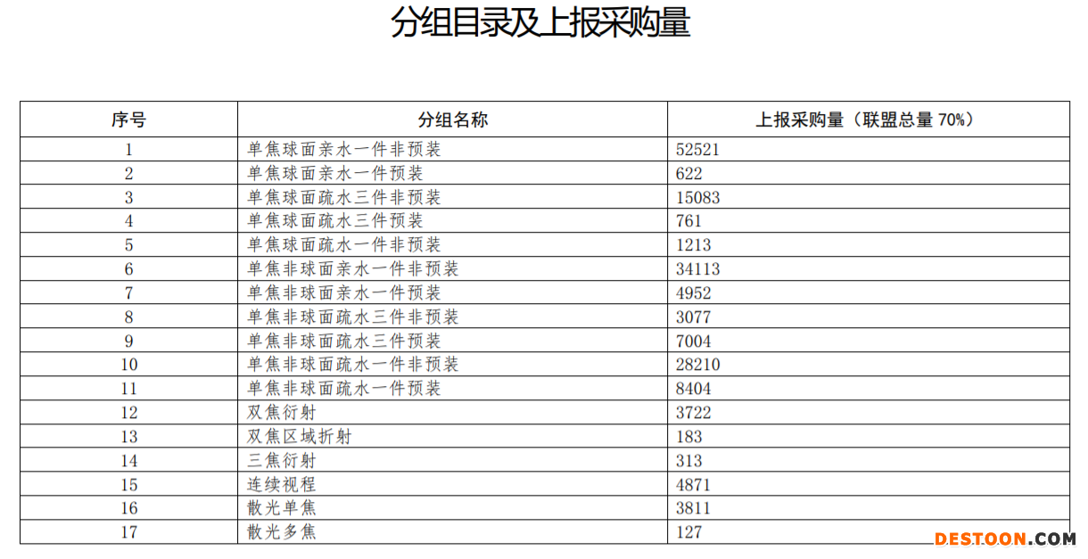 本次聯(lián)合帶量采購品種為人工晶體,采購周期為一年,對于采購產(chǎn)品分組,將按功能屬性,結(jié)合各省上報采購量,確定產(chǎn)品分組目錄,其中單焦晶體11組,多焦晶體4組,散光晶體2組。