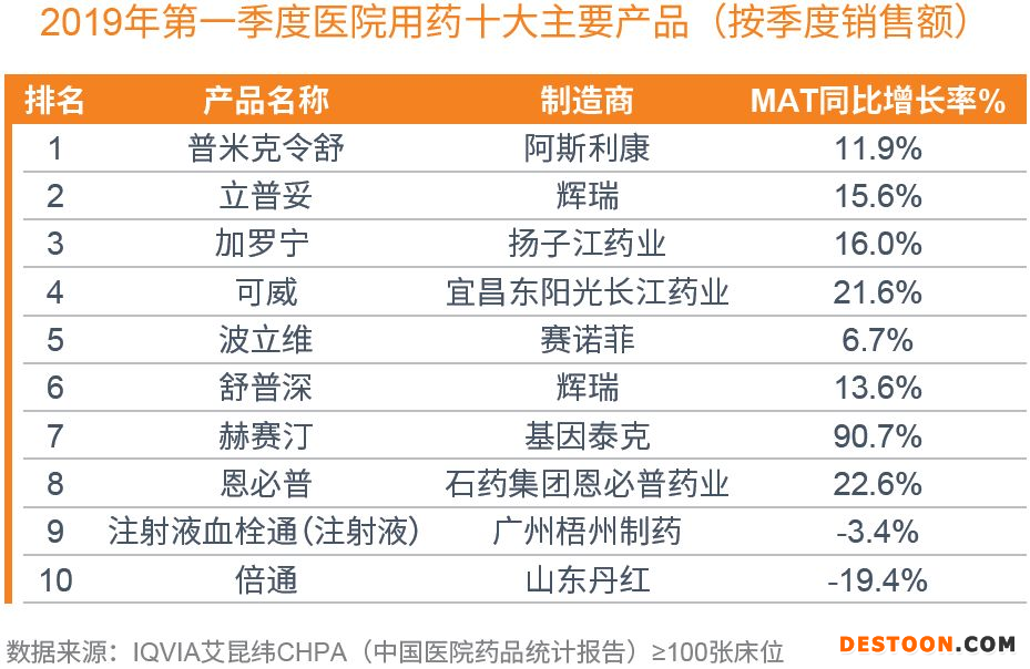 就具體產(chǎn)品來看,揚(yáng)子江藥業(yè)的加羅寧,同比增長8.5%,仍然位居第一;阿斯利康的普米克令舒同比略微下降0.3%,位居第二名;輝瑞的舒普深、石藥集團(tuán)的恩必普、東陽光藥的可威,羅氏的赫賽汀,分別以11.6%、31.8%、37.8%、34.4%位居第三至六名。