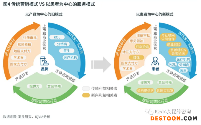 當然,無論政策和環(huán)境發(fā)生怎樣的變化,零售渠道都將成為醫(yī)藥分業(yè)的最終受益者,但這個渠道紅利需要配合服務(wù)模式的轉(zhuǎn)變——傳統(tǒng)的營銷模式已經(jīng)不能滿足市場需求,未來以患者為中心的服務(wù)模式將成為主流,特別是疫情之下凸顯了互聯(lián)網(wǎng)診療帶來的藥品零售新機會。零售企業(yè)應(yīng)主動參與提升數(shù)字化的患者管理和服務(wù)能力。未來,醫(yī)藥零售的生意模式將是數(shù)據(jù)驅(qū)動的線上線下融合,批發(fā)、零售和互聯(lián)網(wǎng)平臺的界限將被打通,并出現(xiàn)依托大連鎖或大平臺的數(shù)字商業(yè)體。(參見圖3、4)