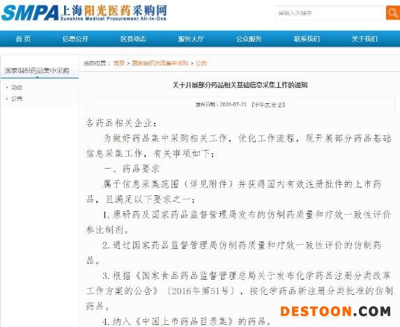 醫(yī)藥網(wǎng)7月23日訊 7月21日晚間,上海陽光醫(yī)藥采購網(wǎng)發(fā)布《關于展開部分藥品相關基礎信息采集工作的通知》(下稱“《通知》”),意味著第三批藥品集采目錄的統(tǒng)計、報量工作已正式啟動。