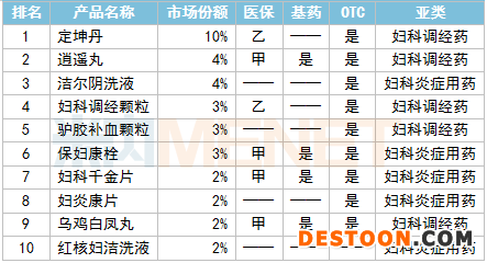 2019年中國(guó)城市零售藥店中成藥婦科用藥產(chǎn)品TOP10