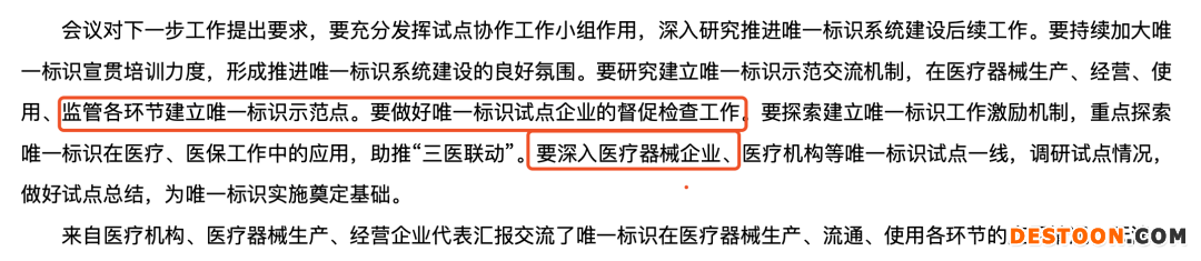 在本次會議上,國家藥監(jiān)局指出,將檢查醫(yī)療器械對醫(yī)療器械唯一標(biāo)識的落實情況。