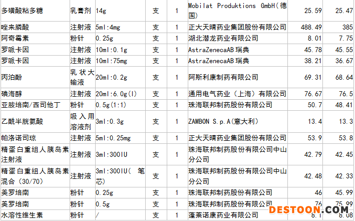 65個下調掛網(wǎng)限價藥品信息表