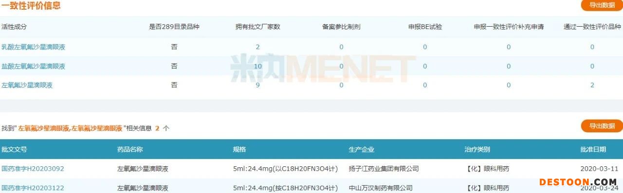 日前,CDE官網(wǎng)顯示,武漢諾安藥業(yè)的左氧氟沙星滴眼液4類仿制上市申請獲得受理。米內(nèi)網(wǎng)數(shù)據(jù)顯示,2019年中國公立醫(yī)療機構(gòu)終端左氧氟沙星眼用制劑銷售額突破10億元,同比增長近20%。目前,擁有左氧氟沙星滴眼液國產(chǎn)批文的有揚子江藥業(yè)、成都倍特藥業(yè)、江蘇漢晨藥業(yè)等8家企業(yè),其中,僅有揚子江藥業(yè)和中山萬漢制藥以仿制4類申報獲批,視同通過一致性評價。
