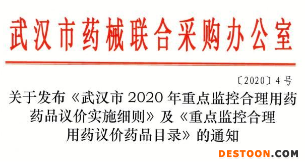 對(duì)于議價(jià)藥品目錄,武漢表示,該目錄是以《國(guó)家衛(wèi)生健康委員會(huì)辦公廳國(guó)家中醫(yī)藥管理局辦公室關(guān)于印發(fā)第一批國(guó)家重點(diǎn)監(jiān)控合理用藥藥品目錄(化藥及生物制品)的通知》、湖北省衛(wèi)健委《關(guān)于印發(fā)《湖北省第一批重點(diǎn)監(jiān)控合理用藥藥品目錄》的通知》和武漢市各醫(yī)療機(jī)構(gòu)制定的重點(diǎn)監(jiān)控藥品目錄清單為依據(jù)制定。