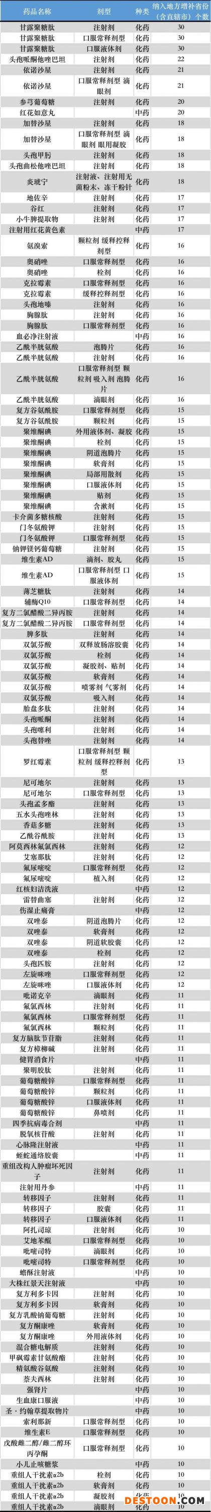 據(jù)相關(guān)媒體不完全統(tǒng)計(jì),有5個(gè)品種在20個(gè)以上的省份進(jìn)行增補(bǔ),分別是參芎葡萄糖、紅花如意丸、依諾沙星、頭孢哌酮他唑巴坦、甘露聚糖肽;26個(gè)品種的增補(bǔ)省份在15個(gè)以上。