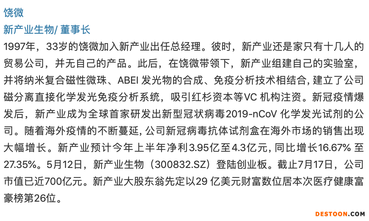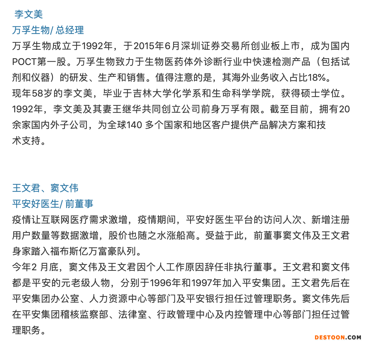 在醫(yī)療器械領(lǐng)域,第2、4 位是李西廷和徐航,二人都為邁瑞醫(yī)療聯(lián)合創(chuàng)始人。