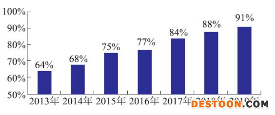 2013-2019年全國中藥材及飲片抽驗合格率