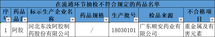 近期全省共抽檢43個(gè)藥品生產(chǎn)企業(yè)、184個(gè)藥品經(jīng)營(yíng)企業(yè)和6個(gè)醫(yī)療機(jī)構(gòu)的287個(gè)品種共608批次藥品。經(jīng)核查確認(rèn),本期抽檢信息公布如下:287個(gè)品種607批次經(jīng)檢驗(yàn)符合藥品標(biāo)準(zhǔn)規(guī)定,1個(gè)品種1批次經(jīng)檢驗(yàn)不符合藥品標(biāo)準(zhǔn)規(guī)定,主要不符合規(guī)定項(xiàng)目為重金屬及有害元素等。