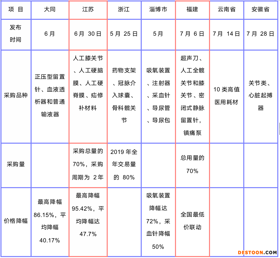 2020年3月中旬國(guó)家醫(yī)保局曾明確要求要在未來(lái)6個(gè)月內(nèi)(即9月中旬前),對(duì)11個(gè)試點(diǎn)省份(江蘇、安徽、福建、青海、上海、浙江、湖南、重慶、四川、陜西和寧夏)開(kāi)展高值耗材帶量采購(gòu)工作,其余23個(gè)省份及城市也要積極跟進(jìn)。