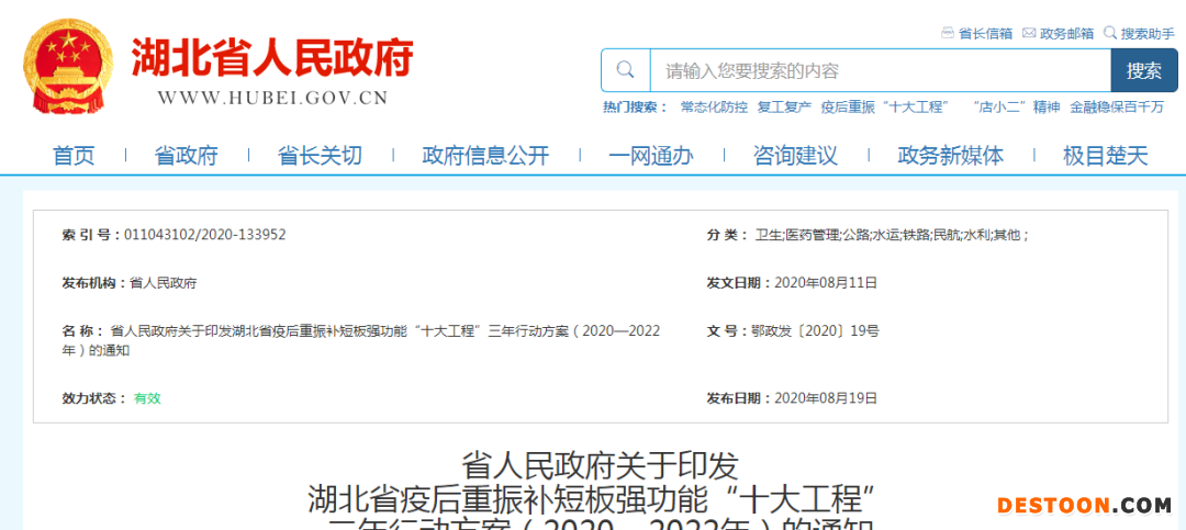 8月26日訊 湖北疫后補(bǔ)短板強(qiáng)功能火力全開!近日,湖北省印發(fā)《湖北省疫后重振補(bǔ)短板強(qiáng)功能“十大工程”三年行動方案(2020-2022年)》(以下簡稱《方案》),啟動疫后重振“十大工程”。