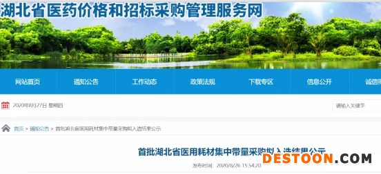 8月26日,湖北省醫(yī)藥價(jià)格和招標(biāo)采購(gòu)管理服務(wù)網(wǎng)發(fā)布《首批湖北省醫(yī)用耗材集中帶量采購(gòu)擬入選結(jié)果公示》(下稱(chēng)《公示》),對(duì)冠脈擴(kuò)張球囊、一次性使用精密輸液器、醫(yī)用膠片三大類(lèi)耗材的中標(biāo)結(jié)果和價(jià)格進(jìn)行公示。