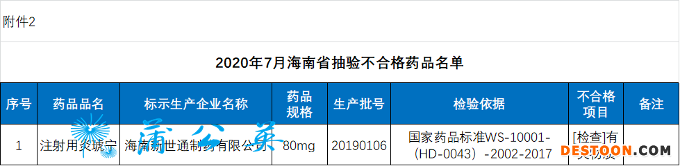 為加強藥品質(zhì)量監(jiān)管,保障公眾用藥安全,按照2020年海南省藥品抽驗計劃及日常監(jiān)督抽樣需要,我局組織對全省范圍內(nèi)藥品生產(chǎn)、經(jīng)營、使用單位進行了藥品質(zhì)量抽查檢驗。現(xiàn)將2020年7月藥品抽查檢驗結(jié)果通告如下: