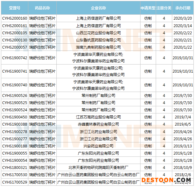 瑞舒伐他汀鈣片上市申請在審評企業(yè)