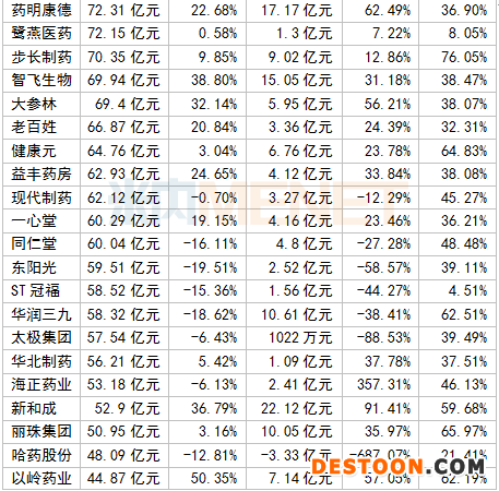 A股醫(yī)藥企業(yè)2020上半年?duì)I收TOP10(單位:億元)